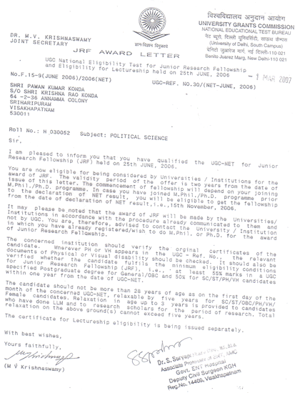 Pawan Kumar Konda set a record by qualifying for the UGC NET Junior Research Fellowship five times -- in history, political science, public administration, international and area studies and sociology between 2005 and 2009 (each fellowship is worth Rs. 10 lakhs)