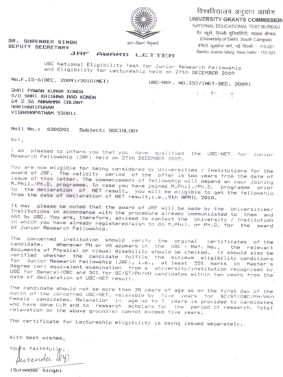 JRF AWARD LETTER,
